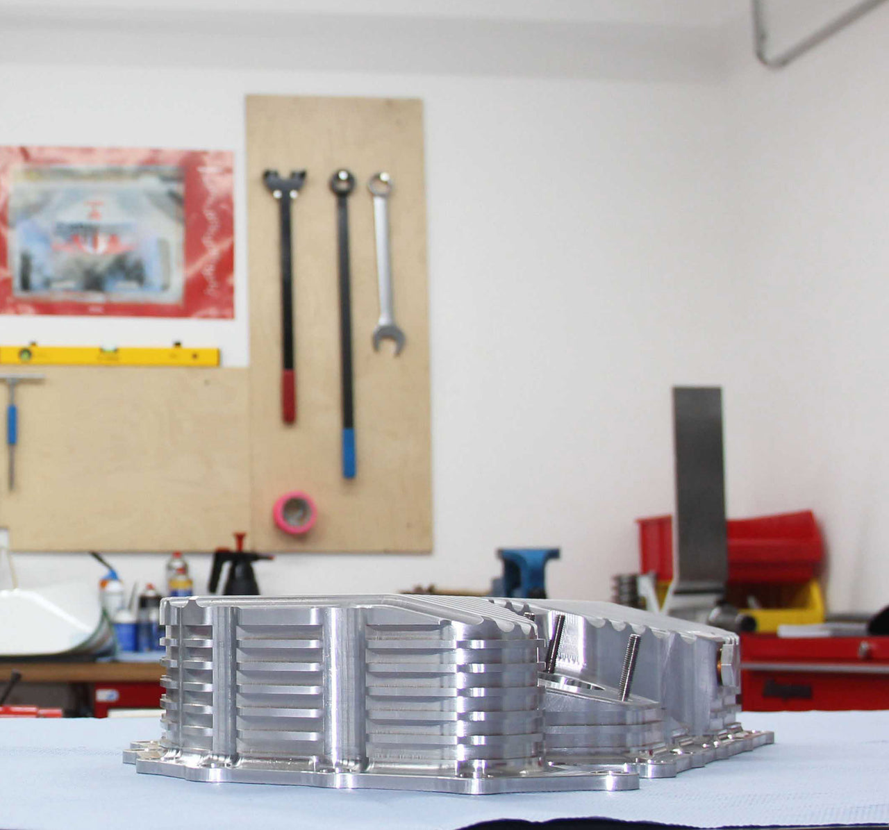 ผลิตจาก อะลูมิเนียมบล็อกตัน CNC Milling → แข็งแรง ทนทาน กว่าอ่างพลาสติกเดิม