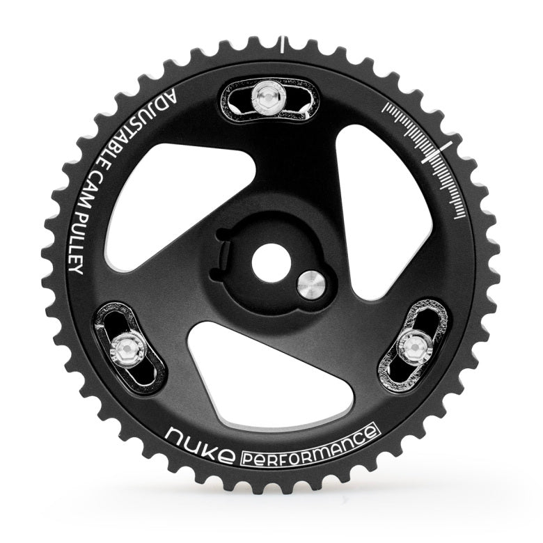 เฟืองแคมชาฟท์อลูมิเนียมปรับองศาได้จาก Nuke Performance ถูกออกแบบเฉพาะสำหรับเครื่องยนต์ BMW M20 ในรุ่น E30 และ E34 เพื่อมอบความเที่ยงตรงและความทนทานในระดับมอเตอร์สปอร์ต ปรับองศาแคมได้ ±11° เพื่อการจูนเครื่องยนต์อย่างละเอียดและแม่นยำสูงสุด