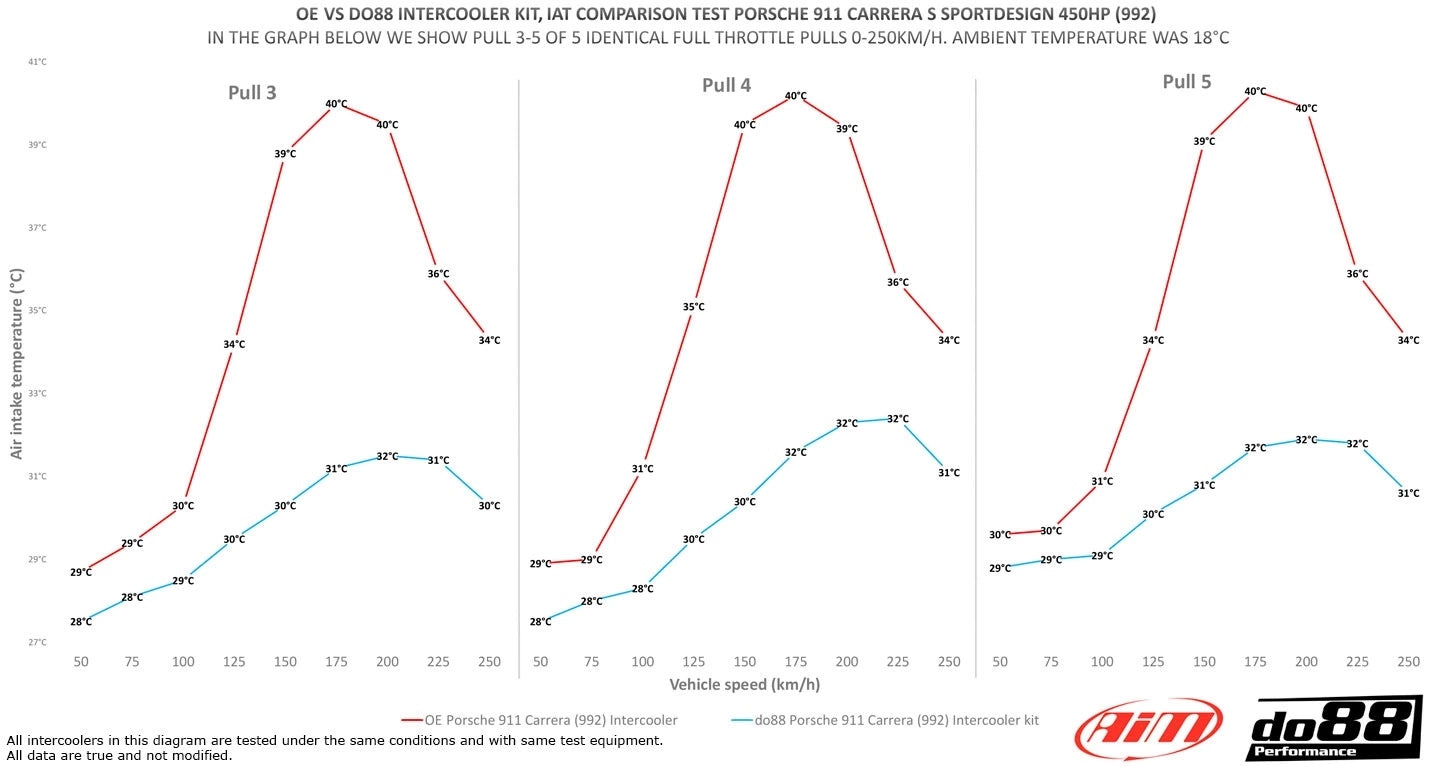 ทำการทดสอบในรถ Porsche 911 Carrera S (450 HP) บนสนามปิด ระยะเร่ง 50–250 km/h ต่อเนื่อง 5 ครั้งโดยไม่มีการพัก