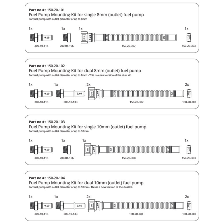 Fuel Pump Mounting Kit Ø8.4–10mm (ID10 / 3⁄8”)